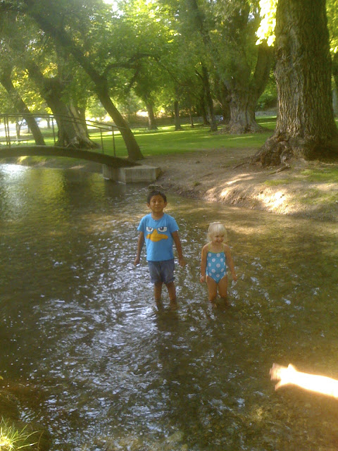 What could warm my heart more than a big brother taking little sister by the hand for a stroll down the canal?