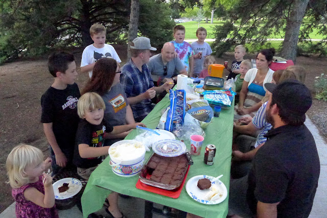 Gathered 'round the table for cake and ice cream to celebrate September birthdays...